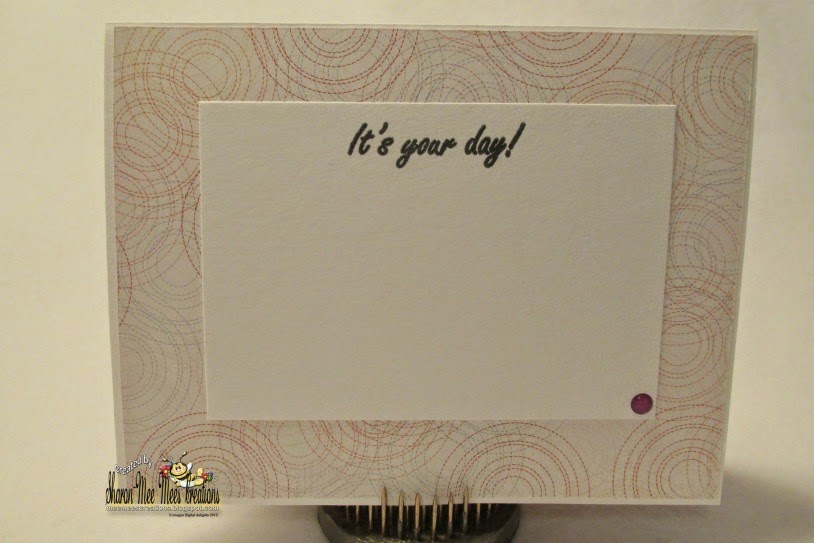 Morning!! It's Monday and that means we are starting a new challenge at Bitten By The Bug 2. Our wonderfully talented DT Sister Mayra is hosting this weeks challenge. She has challenged us and you to use a Cricut frame on your project. Now I really wasn't sure what I wanted to do with this challenge. I checked out the frames that are on the Elegant Edges cartridge. I picked one out, cut the back of it. When I started cutting the top piece with the design on it, it got chewed up. Well, the design did. Tried again, and it happened again. So I decided that I would just use the back piece. I then used the Birthday Bash cartridge and cut the Happy Birthday sentiment. I popped up the frame and glued the sentiment to the card front. The bg designer paper is from My Mind's Eye-Happy Day 6x6 pad. The dots are from Doodlebug Designs Inc.-Snow Flurry Sprinkles. The inside sentiment is from the 'Make a Wish' stamp set from Mary-Cardz TV Stamps.